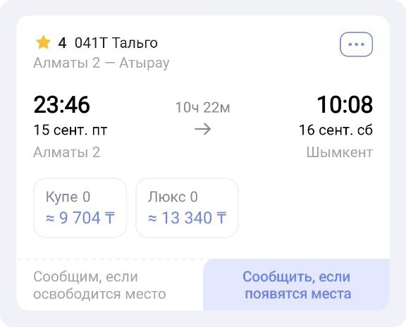 При планировании поездки заранее билеты на нужные даты могут быть недоступны. В таком случае можно оформить подписку на старт продаж. Как только билеты появятся в продаже, вы получите уведомление.